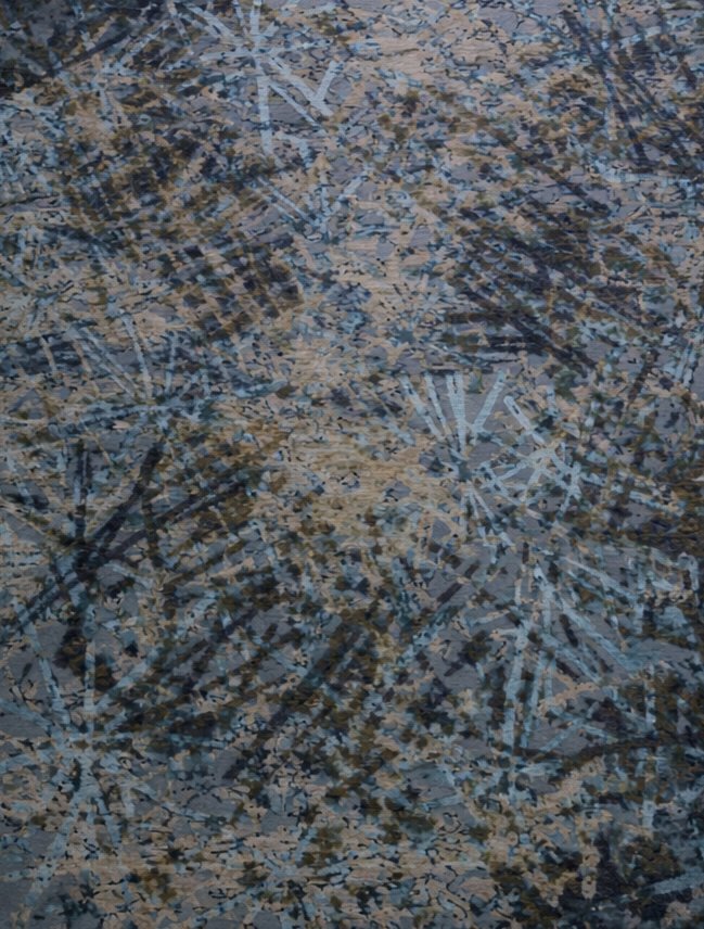 HM-168 Handcrafted Wool, Bamboo Silk & Nettle Carpet – Abstract Burst Artistic Design (8x10 ft)
