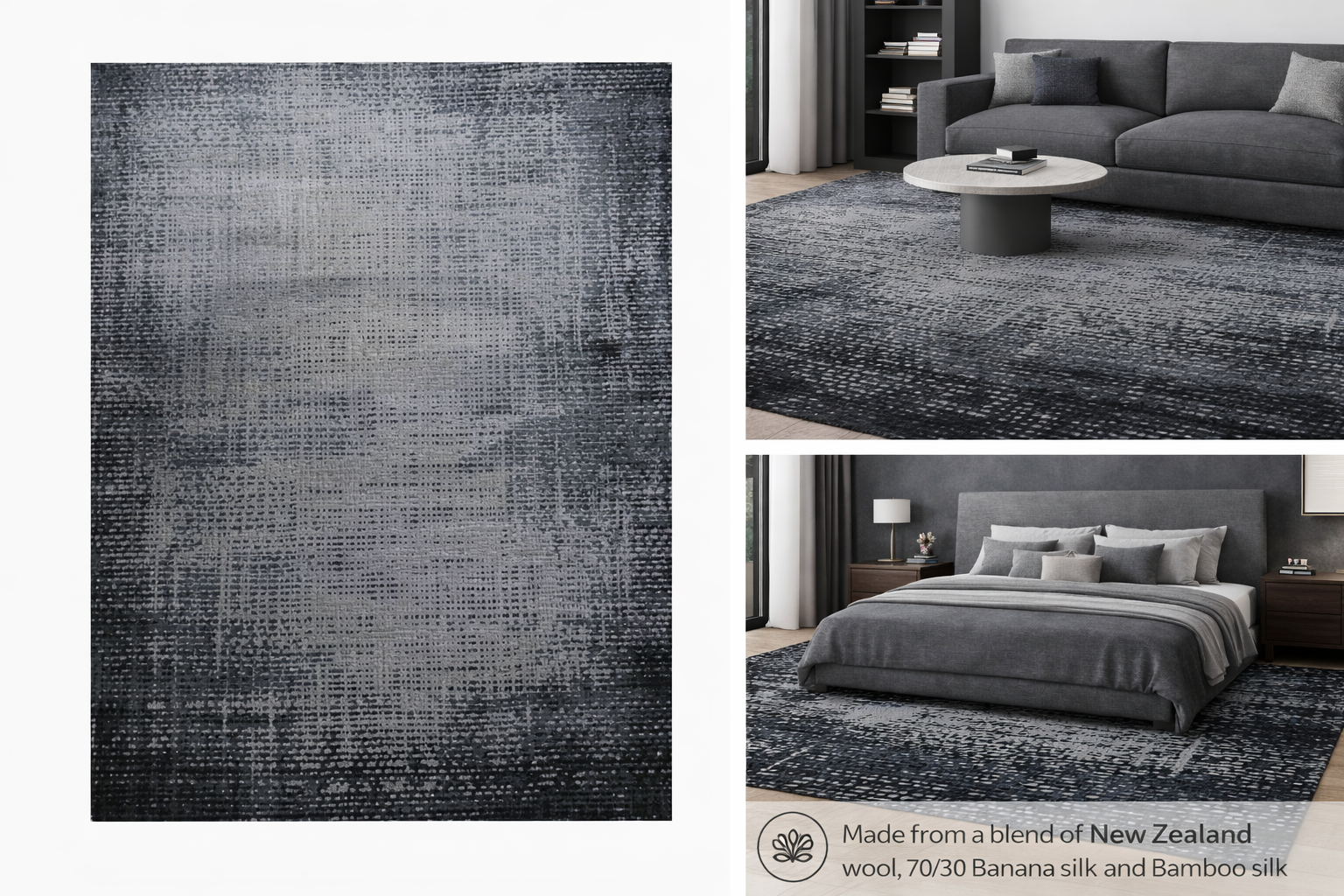 HM-115 Handcrafted Wool, Banana Silk & Bamboo Silk Carpet – Gradient Distressed Design (8×10 ft)