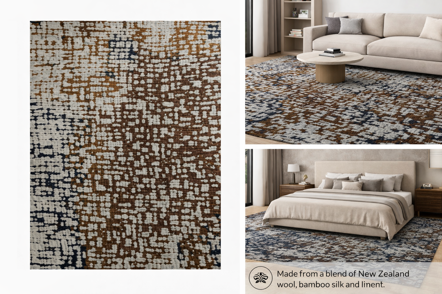 HM-111 Handcrafted Wool & Bamboo Silk Carpet – Bold Organic Pattern (8×10 ft)