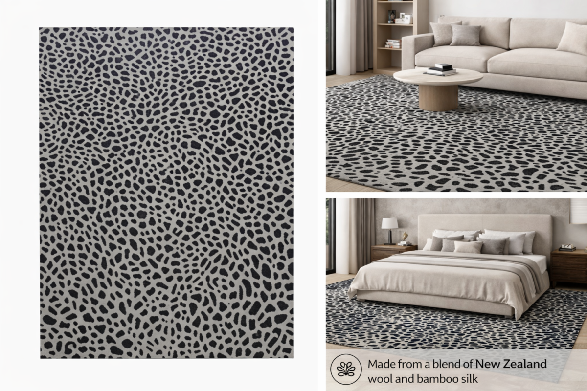 Made from a premium blend of New Zealand wool, bamboo silk, and Chinese nettle, it offers durability, softness, and a subtle sheen. The muted grey palette with light contrasting textures makes it highly versatile—perfect for contemporary, minimalist, or luxury interiors.